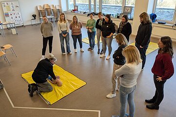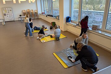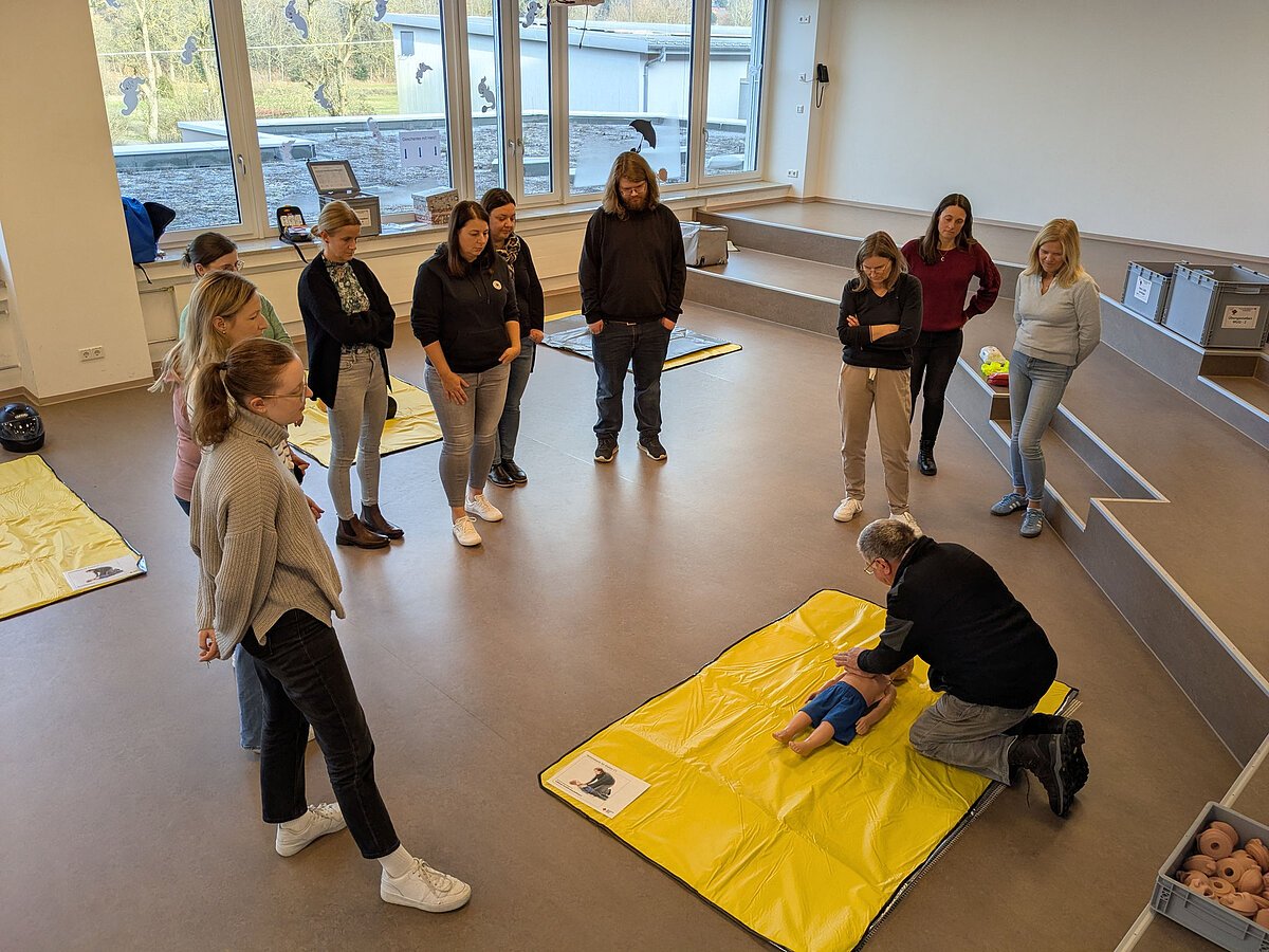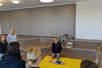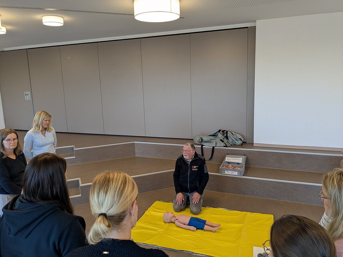 Am 19. November 2025 nutzte das Kollegium der Grundschule Nennslingen den Buß- und Bettag für eine ganztägige Erste-Hilfe-Schulung speziell für Bildungs- und Erziehungseinrichtungen. Unter der fachkundigen Leitung von Gerhard Grimm vom BRK Weißenburg wurden Kenntnisse aufgefrischt und praktische Maßnahmen für Notfallsituationen trainiert.