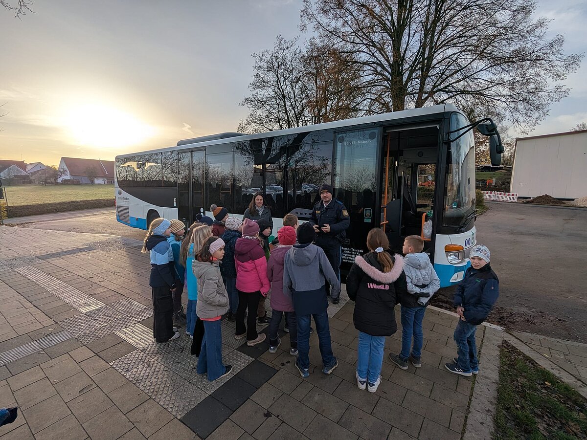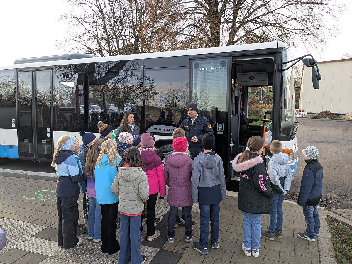 Die Schülerinnen und Schüler erfuhren unter anderem, welche Gefahren entstehen können, wenn man an der Haltestelle drängelt oder im Bus herumrennt, und warum es so wichtig ist, sich an die Anweisungen des Fahrpersonals zu halten. Besonders eindrucksvoll war für die Kinder die praktische Demonstration mit dem Schulbus.