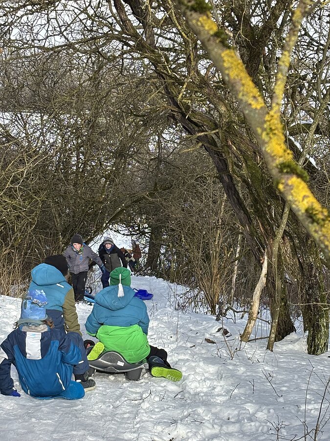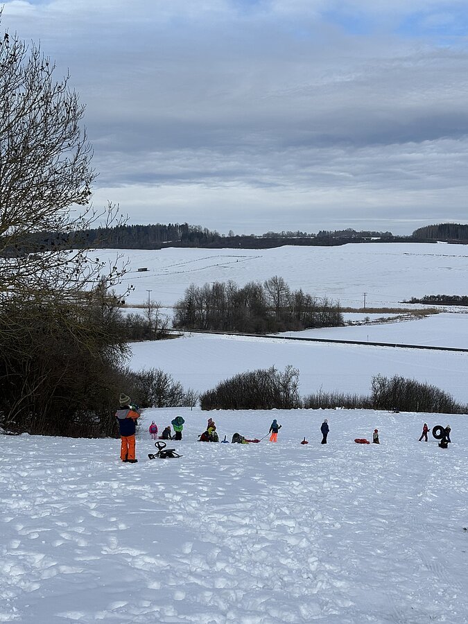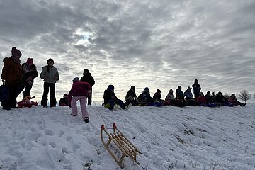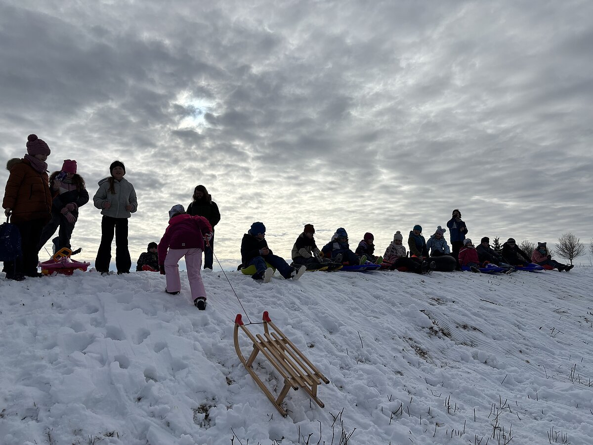 Bei bestem Winterwetter verlegten die Klassen 2a und 4a ihren Sportunterricht an den Nennslinger Schlittenberg. Mit Holzschlitten, Zipfelbobs, Lenkschlitten, usw. zogen die Kinder los und hatten viel Spaß bei ihren Abfahrten. Das Highlight war natürlich die Piste durch die Geisterbahn. Einige nutzten eine kleine Pause, um Schneemänner zu bauen oder sich bei Tee und der mitgebrachten Brotzeit für die nächste Abfahrt zu stärken.
