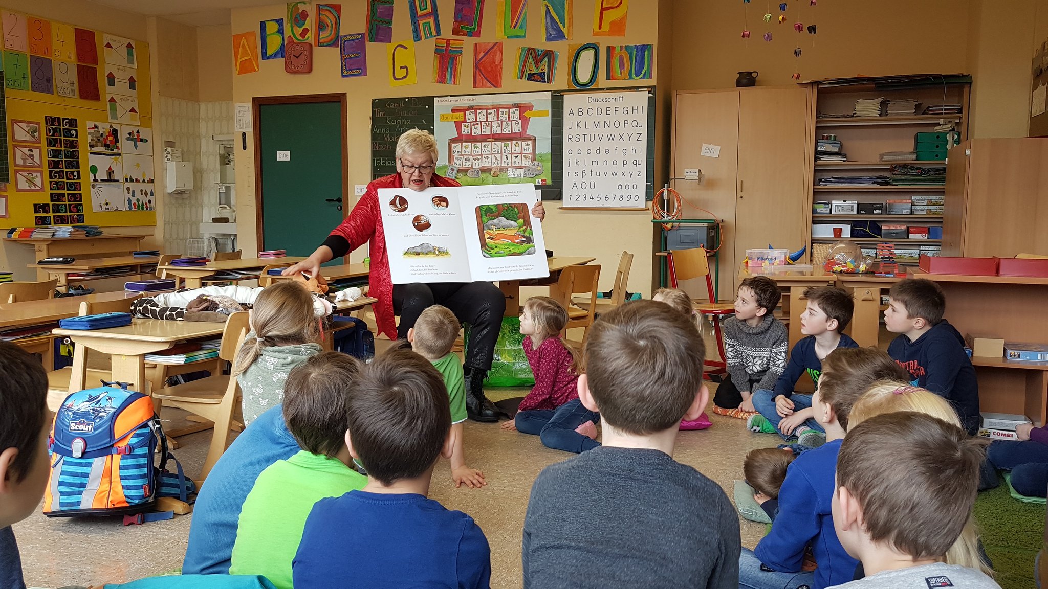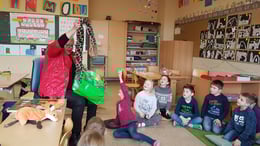 Frau Güntner hat uns dann die Geschichte vom Grüffelo vorgelesen. Die Maus hat alle anderen Tiere im Wald ausgetrickst. Das war sehr lustig.