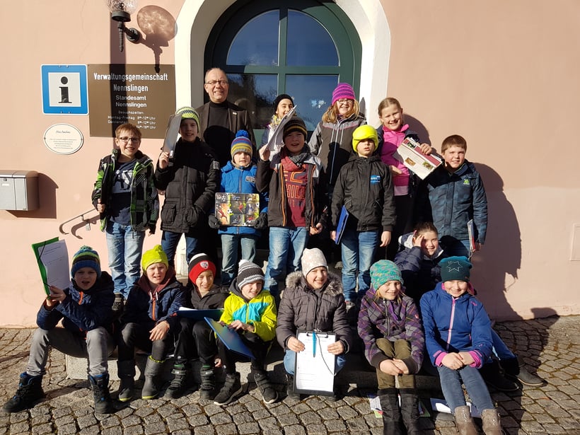 Mitte Februar durften die beiden vierten Klassen die Verwaltungsgemeinschaft Nennslingen im Rathaus besuchen. Der Bürgermeister der Gemeinde Nennslingen Günter Obermeyer empfing beide Klassen