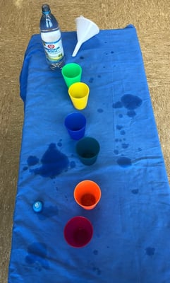Im Zimmer der Klasse 1a konnten alle ausprobieren, wie viele Becher mit einem Liter Wasser gefüllt werden konnten. Hat es sich jemand gemerkt? Es waren … Becher voll.