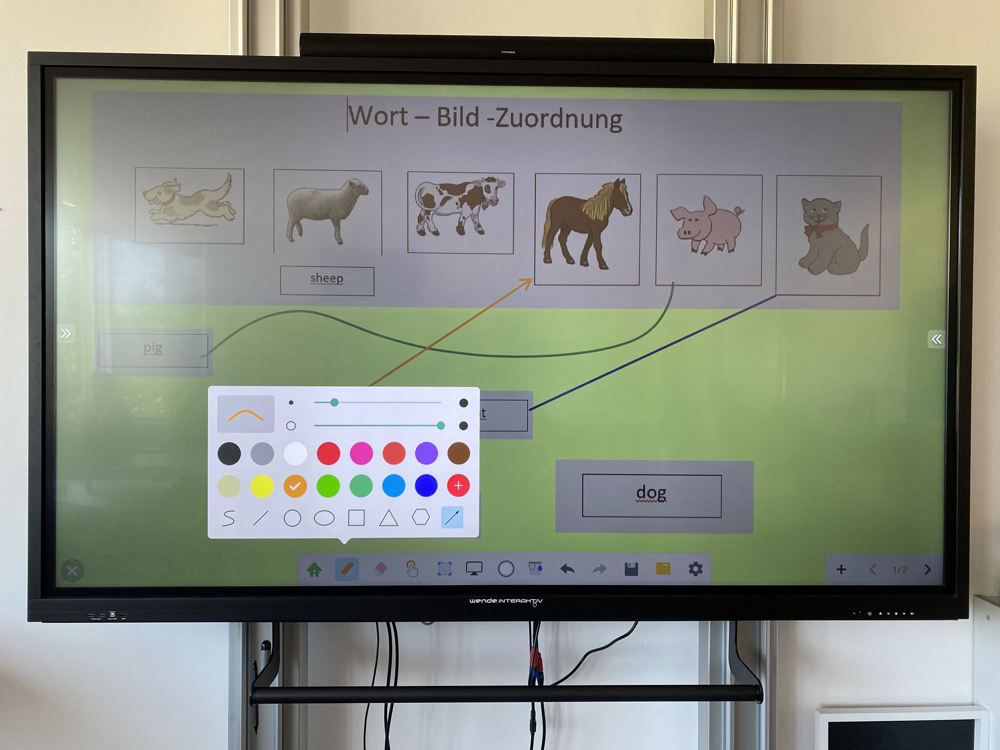 Praktisch ist auch das Vergrößern oder Verkleinern von Wörtern oder Bildern, die dann ohne Probleme an der Tafel verschoben werden können.