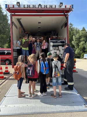 Besondere Highlights waren die Vorführung eines Fettbrandes, bei der die Kinder hautnah erleben konnten, wie gefährlich und spektakulär sich Löschversuche mit Wasser bei brennendem Fett auswirken können. Den krönenden Abschluss bildete die Rückfahrt zur Schule in den Feuerwehrfahrzeugen - unter Sirenengeheul und mit leuchtenden Kinderaugen. Dieser Besuch bot den Schülern nicht nur eine lehrreiche Abwechslung zum Schulalltag, sondern vermittelte ihnen auch wichtige Erkenntnisse über den Brandschutz und die Arbeit der örtlichen Rettungskräfte.
