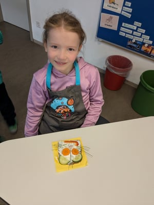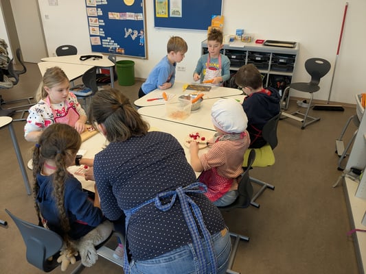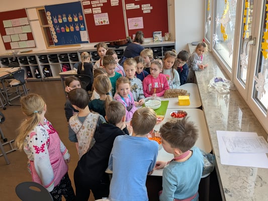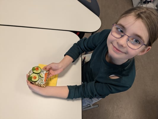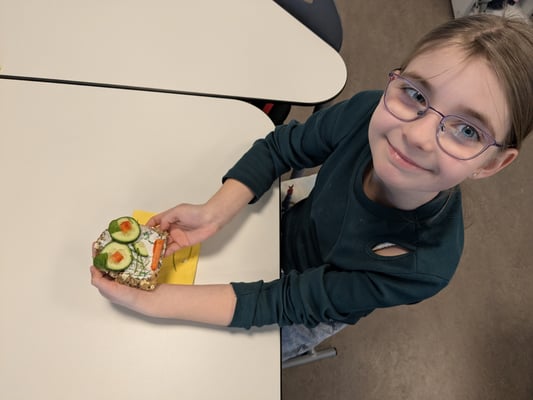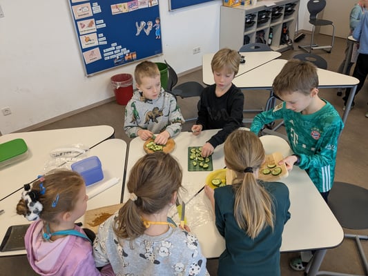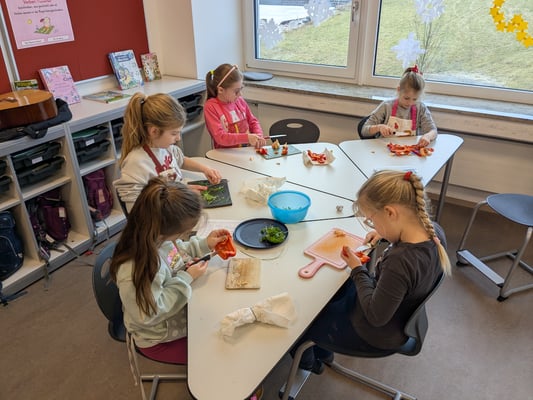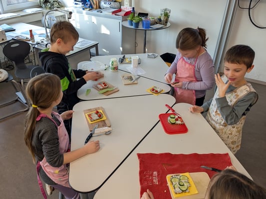 Am Donnerstag lernten die Kinder in einem Theorieteil, warum gesunde Ernährung so wichtig ist. Am Freitag wurde es dann praktisch – mit viel Spaß gestalteten die Schülerinnen und Schüler bunte Gemüsegesichter auf Brot. So wurde das Pausenbrot nicht nur gesund, sondern auch kreativ und lecker!