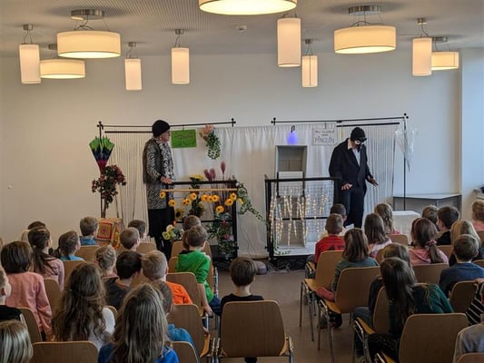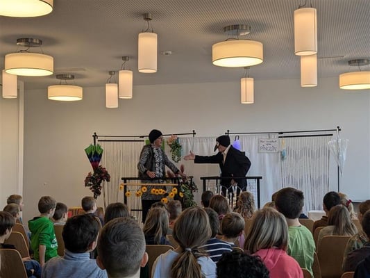 Am 18. Dezember sorgte die Luna Bühne für ein besonderes Erlebnis in der Grundschule Nennslingen. In diesem Jahr brachte die Luna Bühne das bezaubernde Theaterstück „Frau Dachs und Herr Pinguin“ mit. Die Geschichte erzählt von einer ungewöhnlichen Nachbarschaft, die unterschiedlicher nicht sein könnte. Frau Dachs und Herr Pinguin lernen, dass sie trotz ihrer Unterschiede miteinander sprechen, sich verstehen und sich sogar näherkommen können.