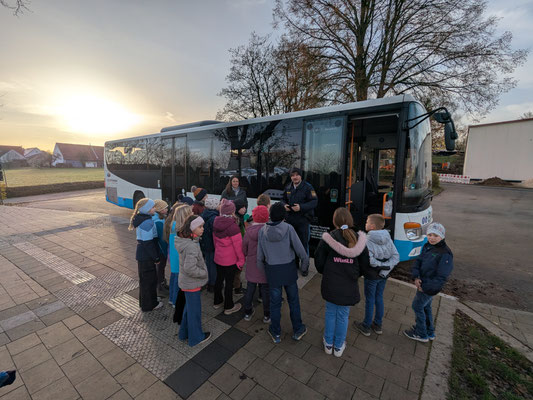 Am Donnerstag, dem 13. November 2025, fand an unserer Schule ein Busregeltraining für die ersten Klassen statt. Am darauffolgenden Tag, Freitag, den 14. November 2025, kamen auch die vierten Klassen in den Genuss dieser wichtigen Schulung. Durchgeführt wurde das Programm von Herrn Amberger von der Polizei, der den Kindern anschaulich erklärte, wie man sich sicher und verantwortungsvoll an der Bushaltestelle, beim Einsteigen sowie während der Fahrt verhält.