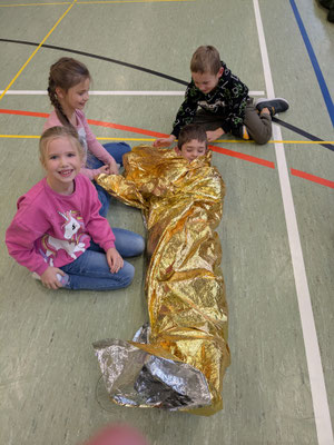 Schärfchen lernten die Kinder an mehreren abwechslungsreichen Stationen, wie man sich richtig verhält, wenn jemand ins Eis oder ins Wasser eingebrochen ist.
